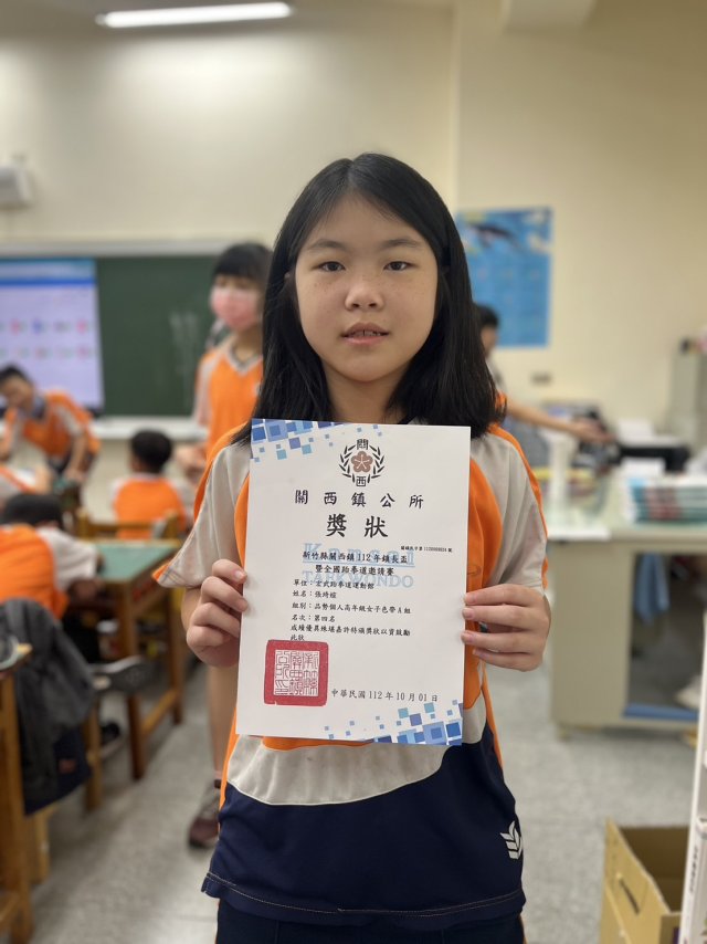 賀!劉祐彤同學 榮獲新竹縣關西鎮112年鎮...