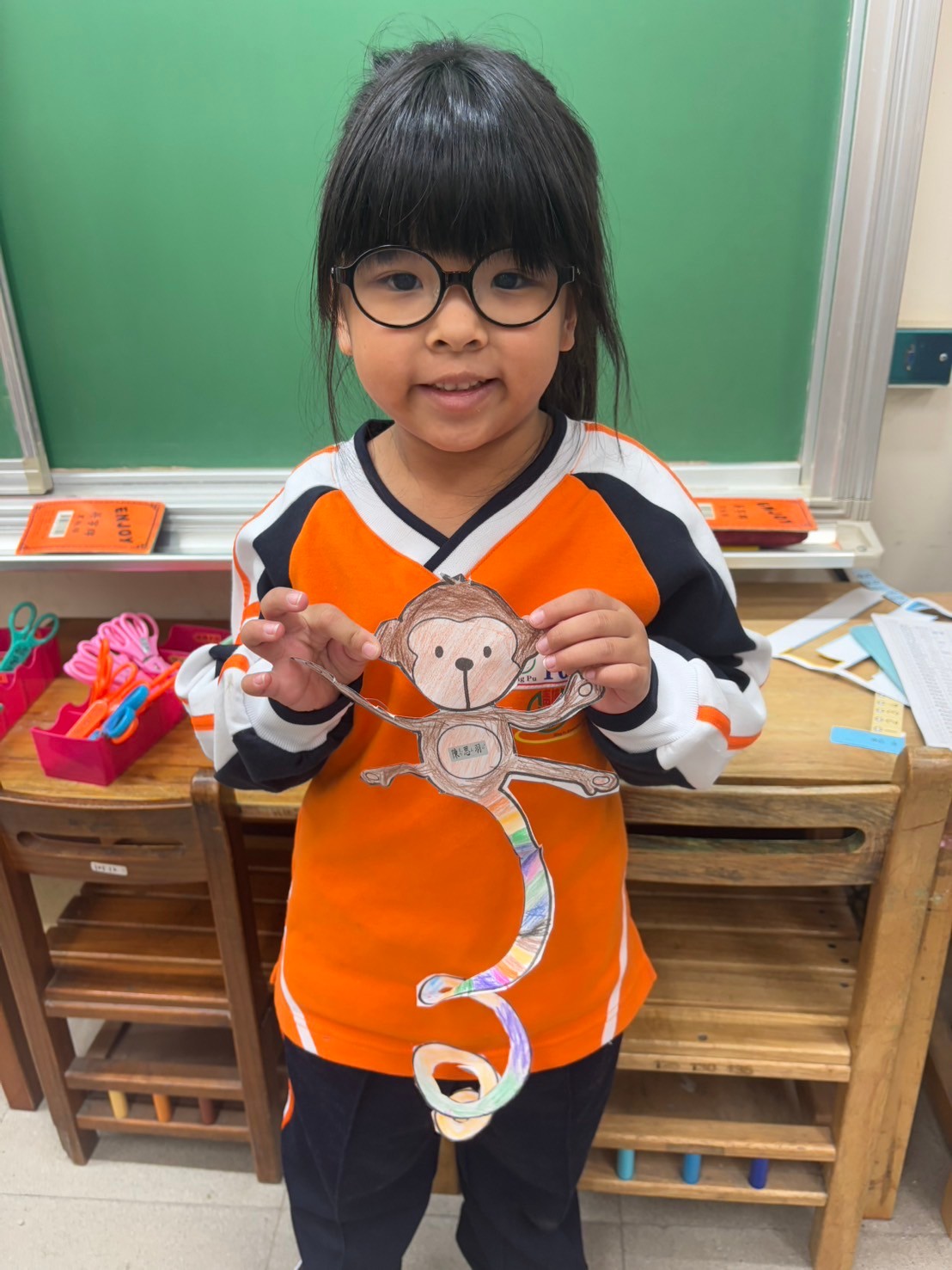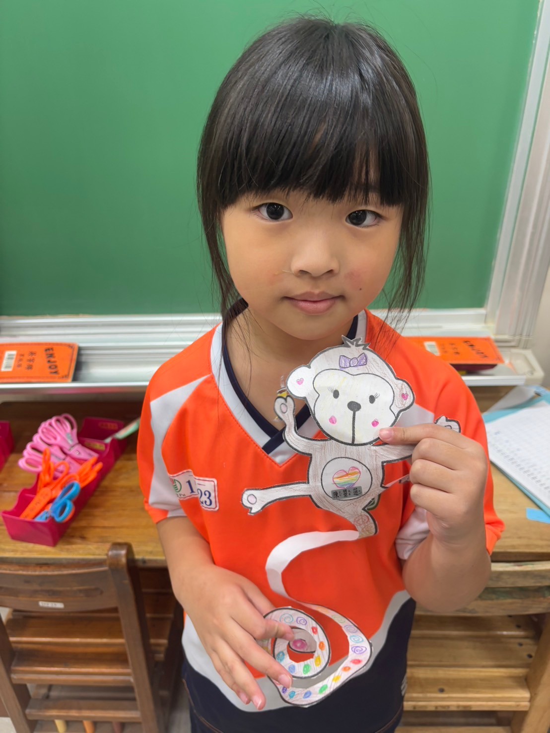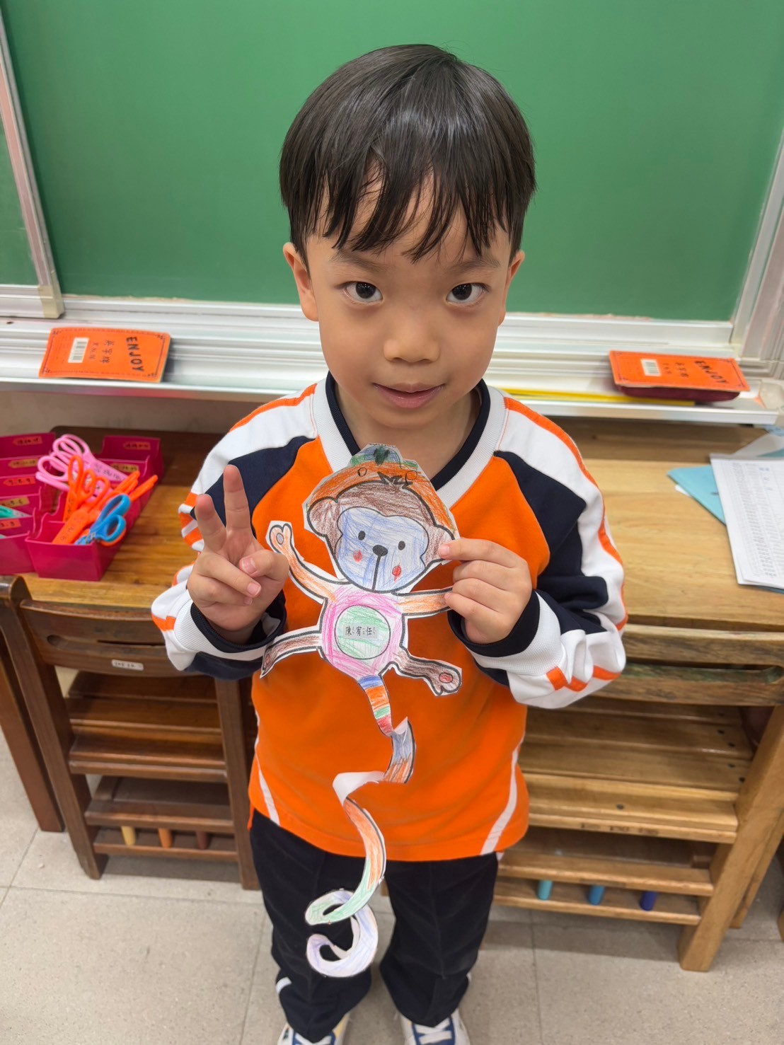 搭配繪本Dear Zoo,除了學習動物的英文單字外, 老師還帶領大家認識各種動物特特性,今天我們就一起來彩繪小猴子,同時也使用剪刀剪出長長捲捲的尾巴喔!附上繪本影音
