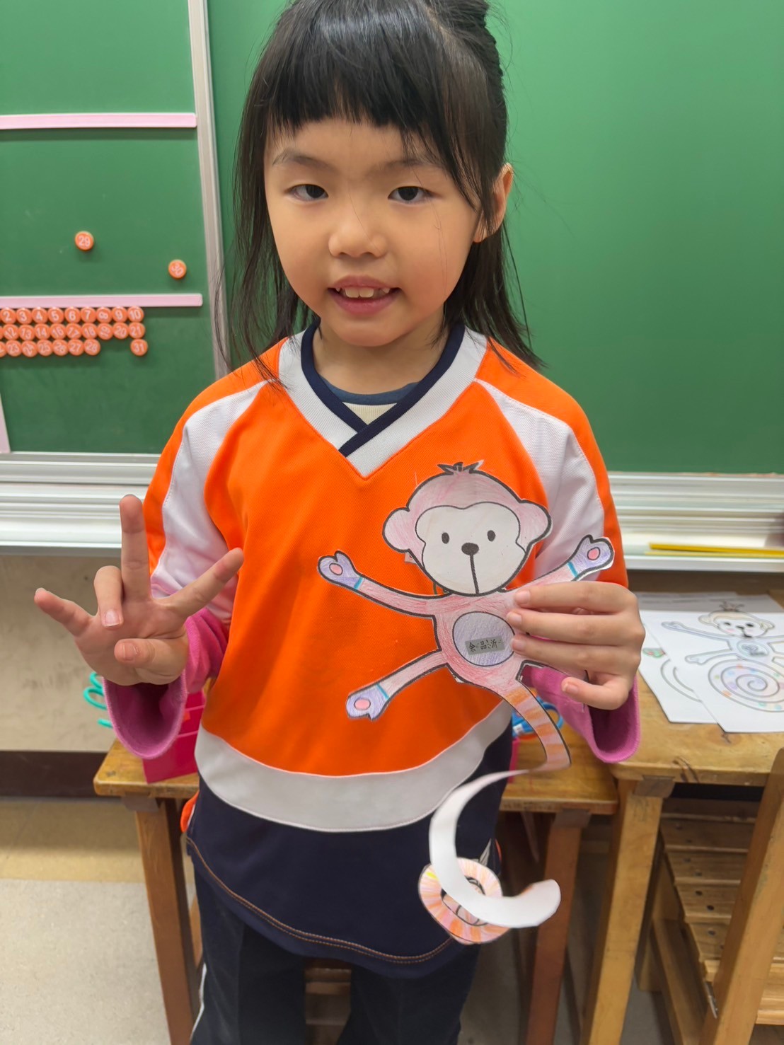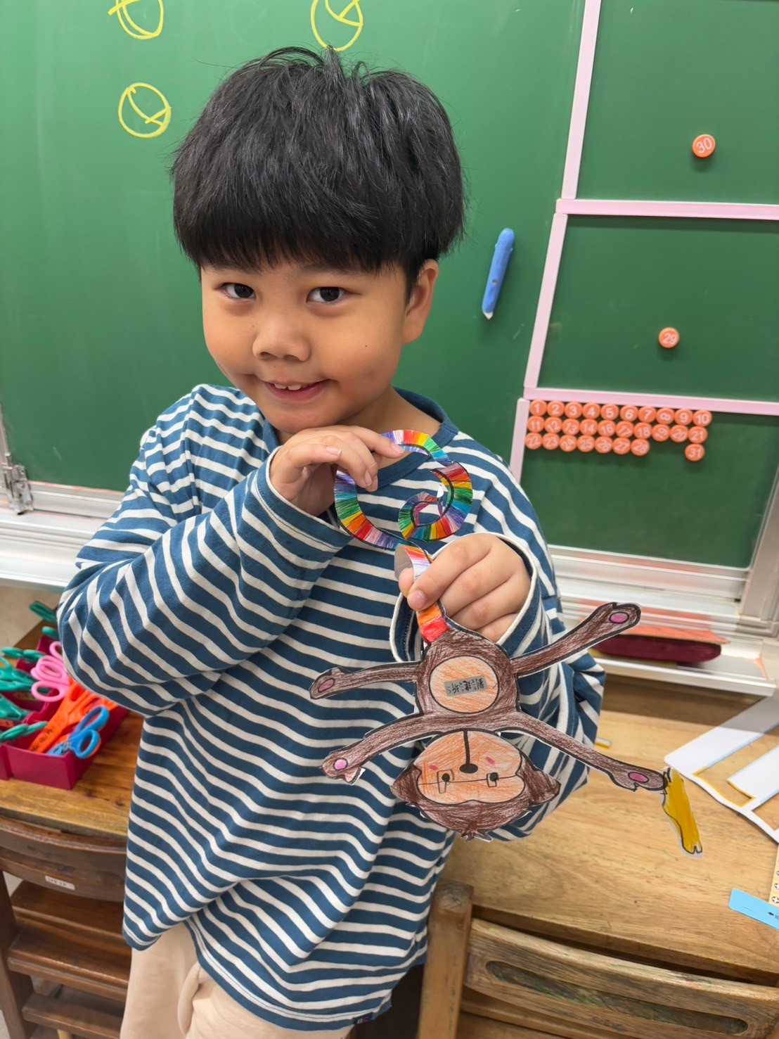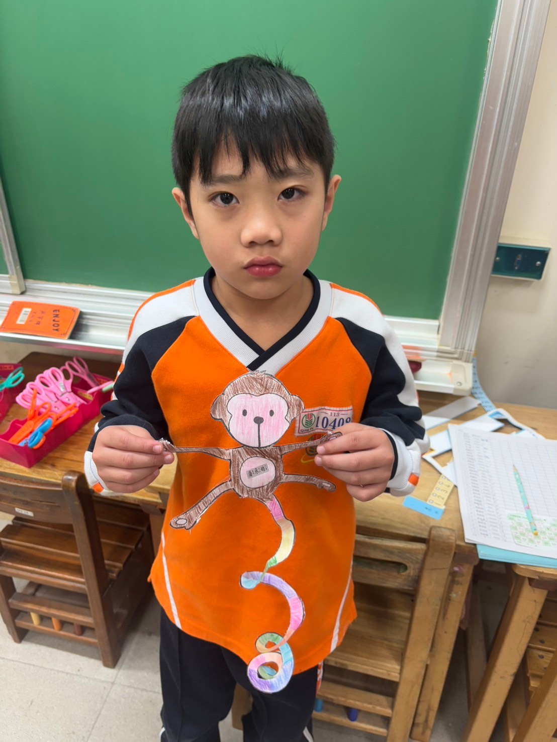 搭配繪本Dear Zoo,除了學習動物的英文單字外, 老師還帶領大家認識各種動物特特性,今天我們就一起來彩繪小猴子,同時也使用剪刀剪出長長捲捲的尾巴喔!附上繪本影音