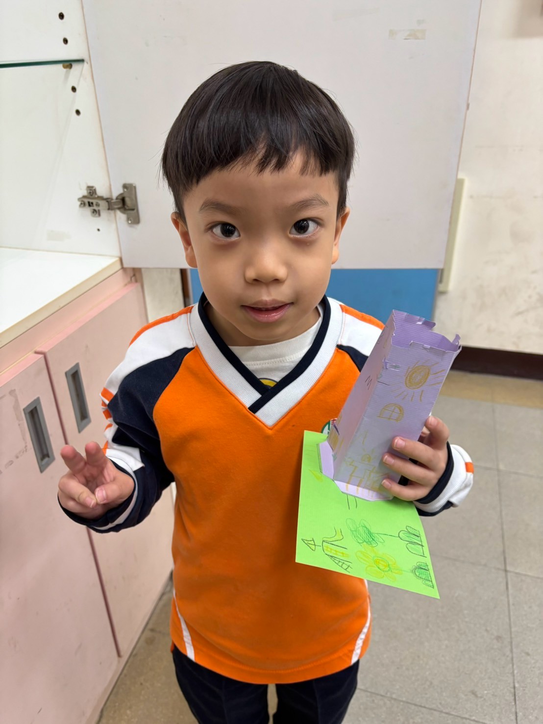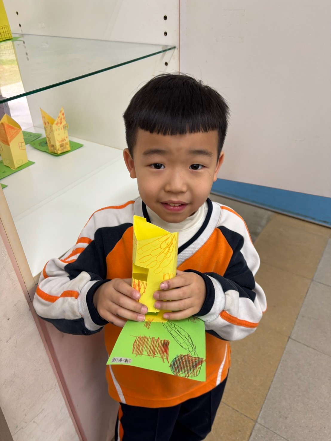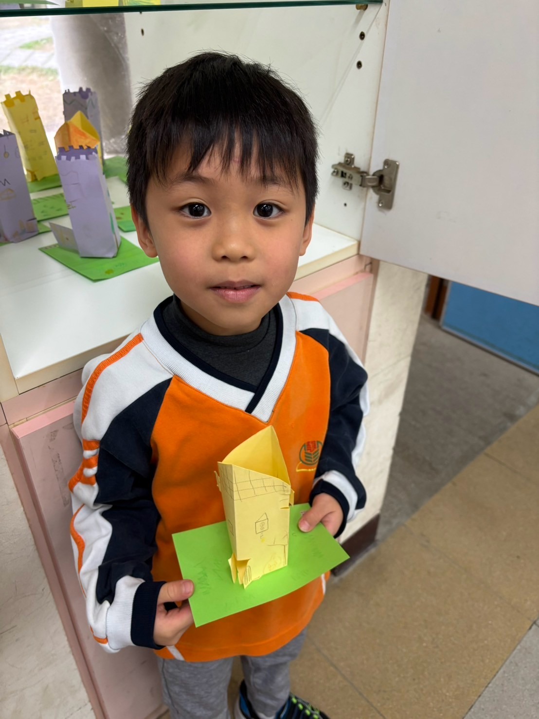 建築系列課程結束後,我們一起用二張平平的紙,畫出自己的家,剪出門和窗戶,最後放在小院子裡,每一間都好溫馨,好可愛喔!