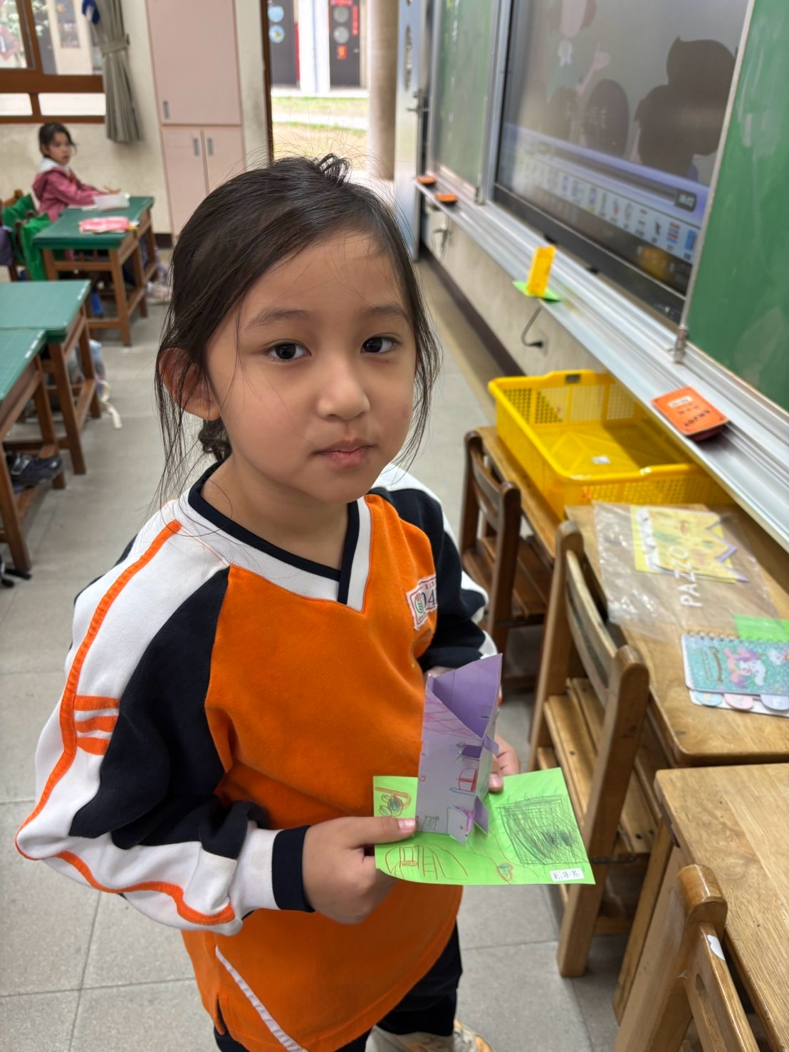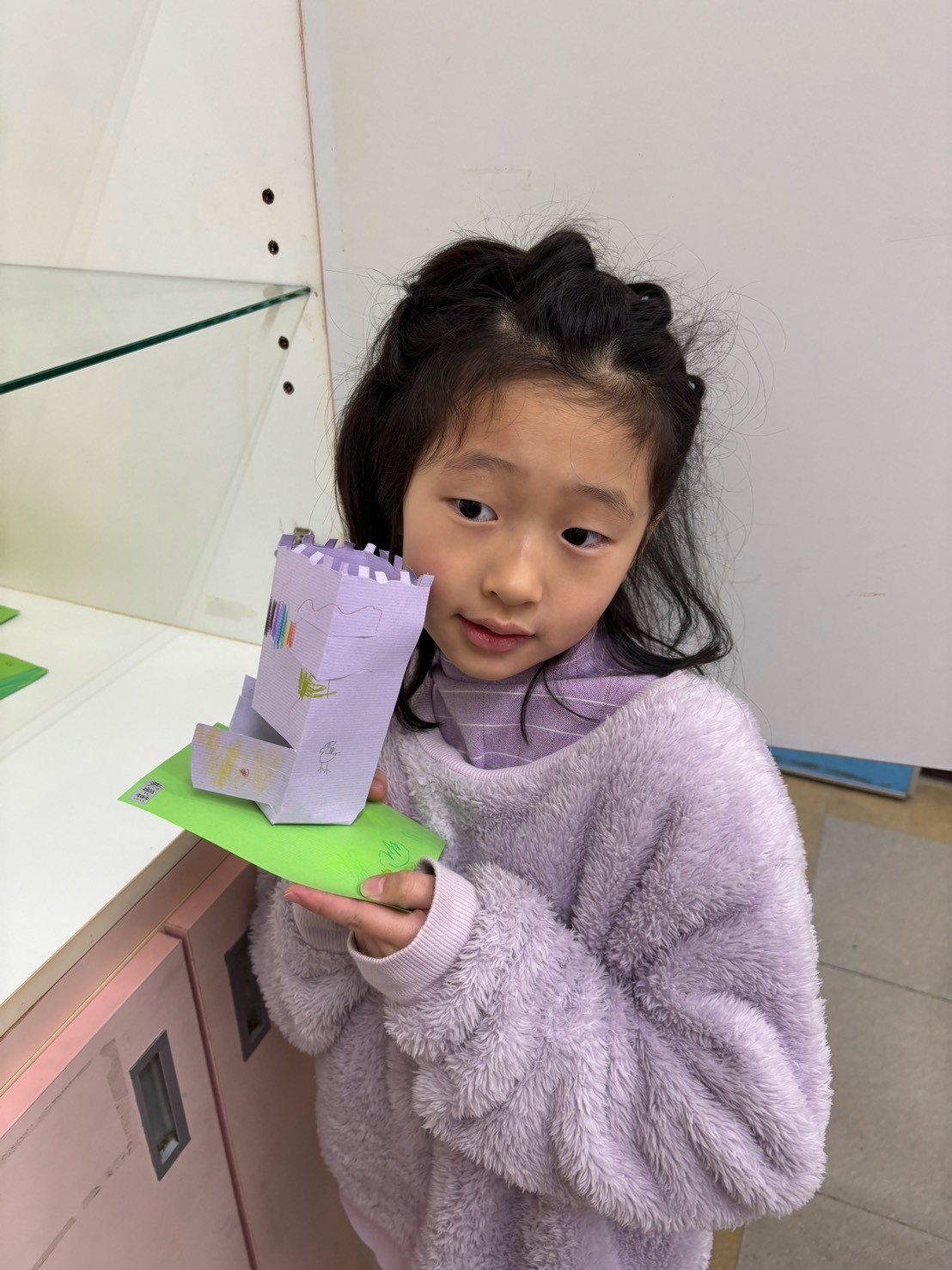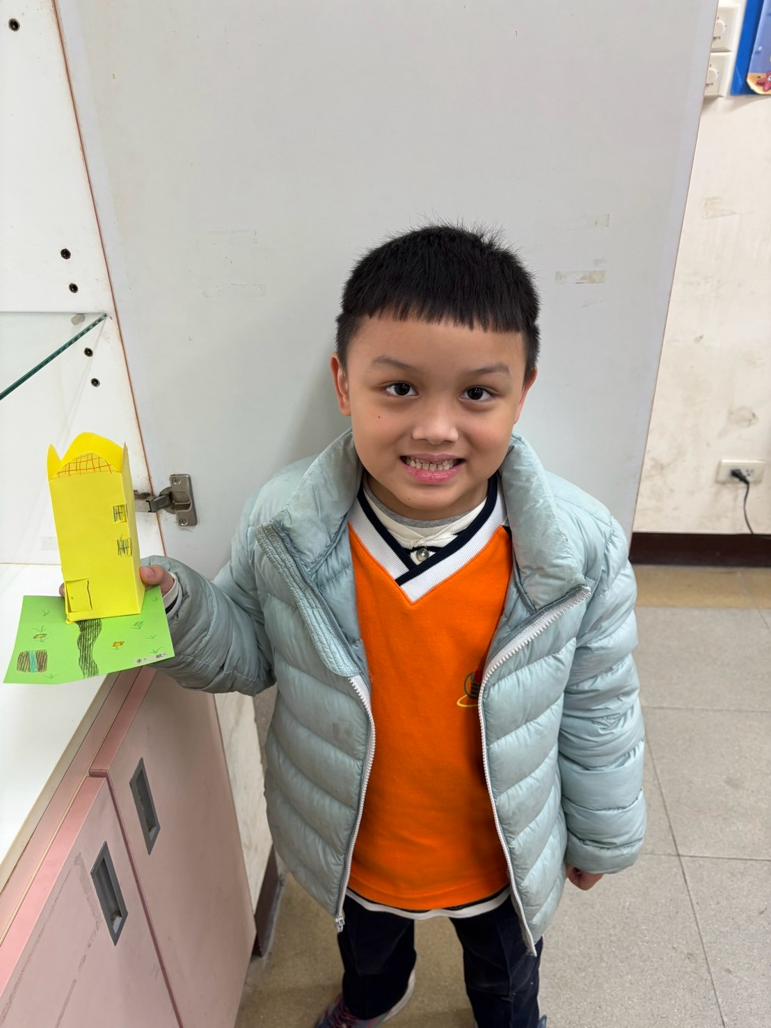 建築系列課程結束後,我們一起用二張平平的紙,畫出自己的家,剪出門和窗戶,最後放在小院子裡,每一間都好溫馨,好可愛喔!