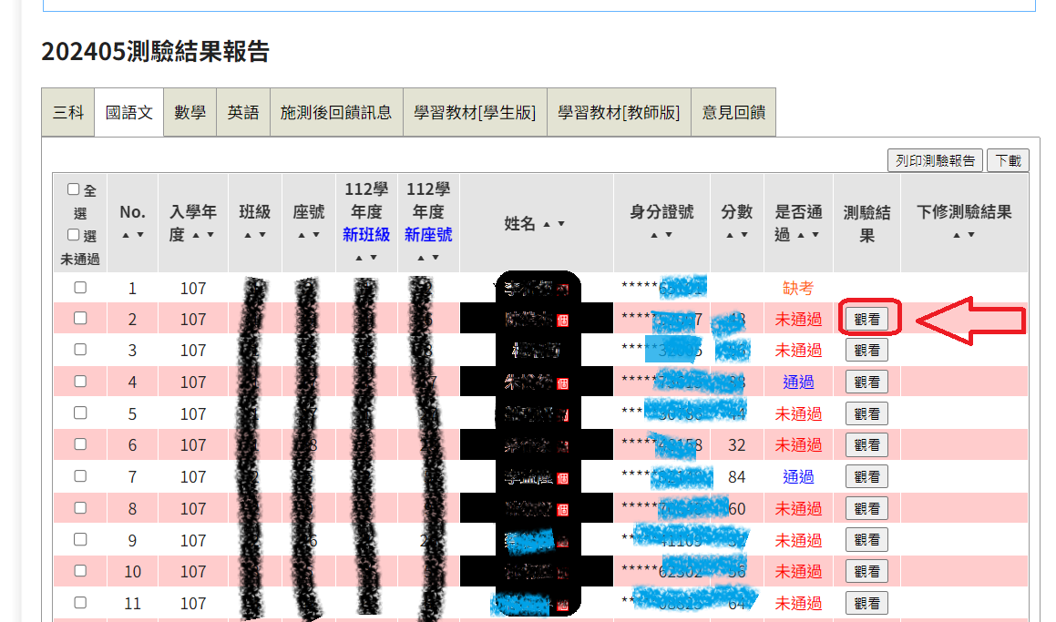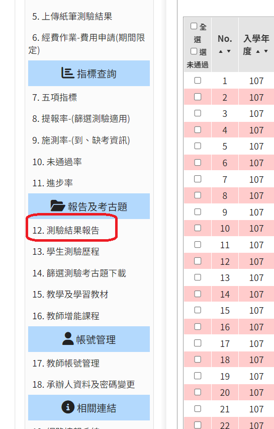 各授課教師, 可於學生完成施測的當天, 即可進入系統觀看測驗結果
