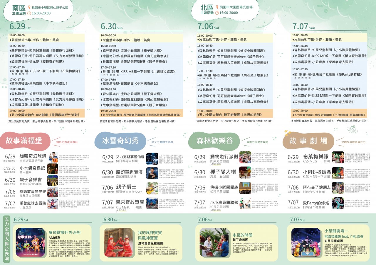 | (二) | 北區主題活動:7月6日(星期六)至7日(星期日)下午4時至晚間8時假大園區桃園陽光劇場辦理。 |