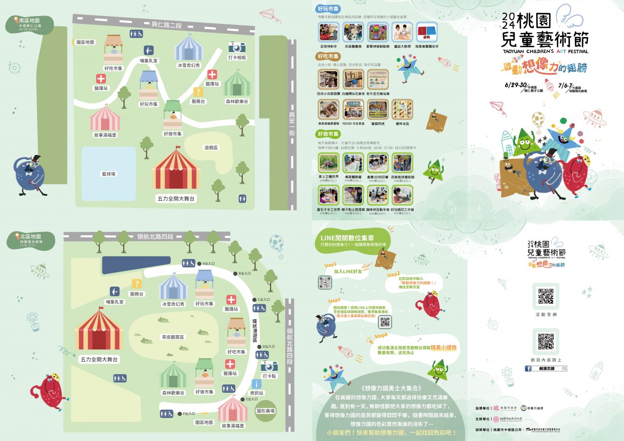 | 一、 | 本局為推廣兒童藝術啟蒙與在地藝文紮根,規劃辦理「2024桃園兒童藝術節」活動,活動內容包含兒童市集、小型表演、故事劇場、主舞台大型演出,辦理時間及地點如下: |