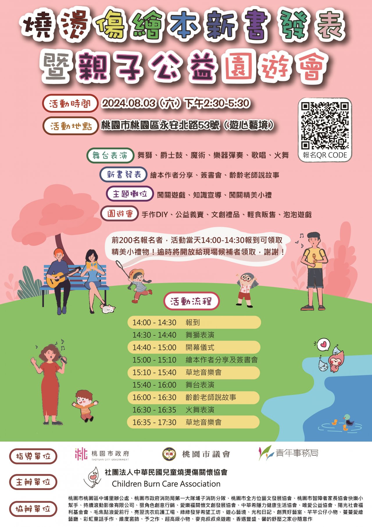 | 主旨: | 函轉社團法人中華民國兒童燒燙傷關懷協會訂於113年8月3日辦理「燒燙傷繪本新書發表暨親子公益園遊會」活動,請查照。 |