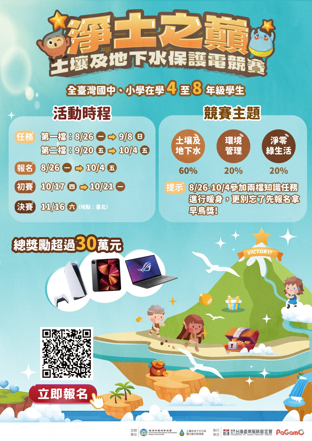 | 二、 | 為提升全國民眾了解土壤及地下水環境保護之重要,環境部環境管理署特辦理旨揭電競賽活動,競賽對象為國小四年級至國中八年級之在校生。 |