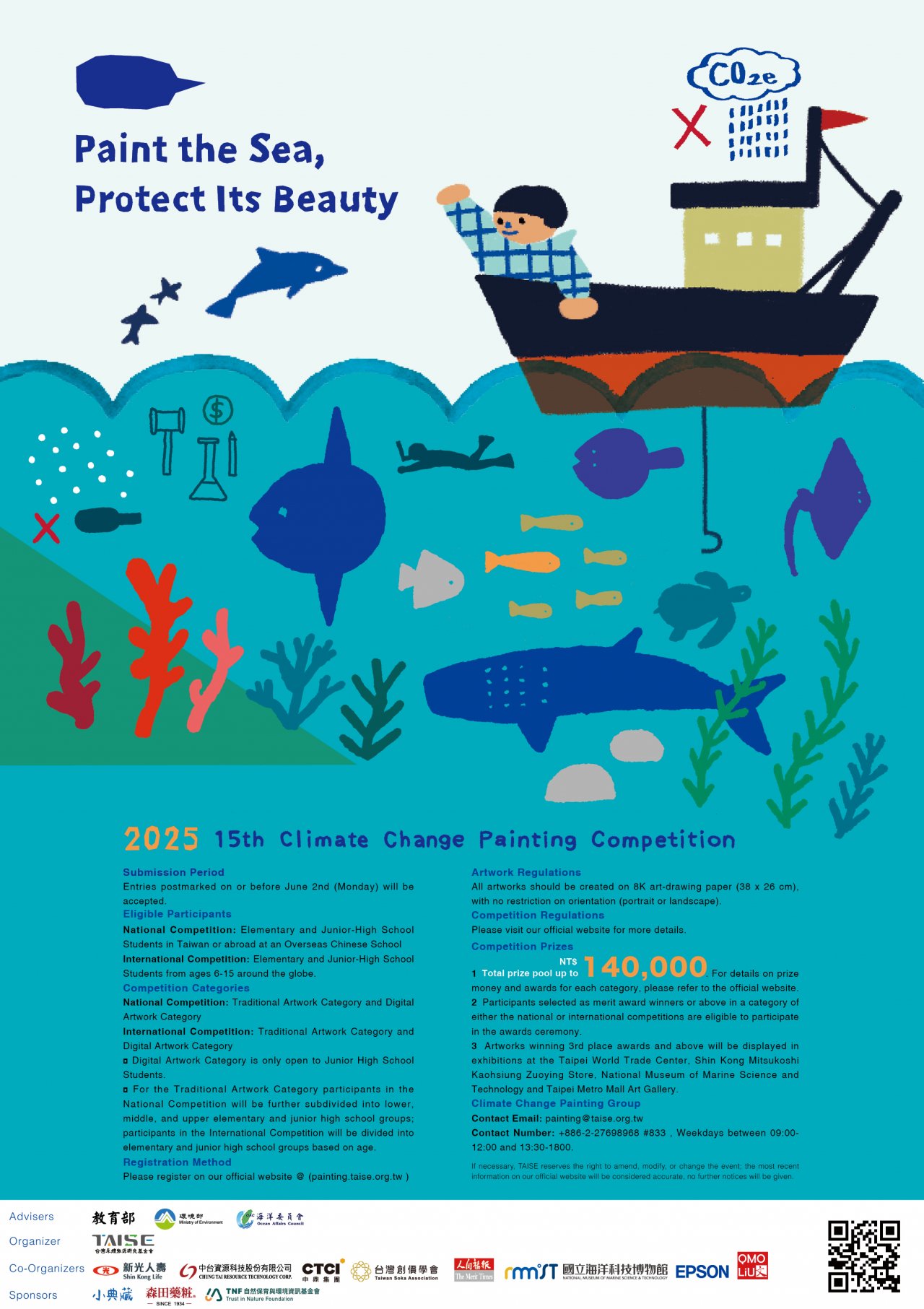 | 二、 | 第15屆「氣候變遷國中小繪畫創作比賽」為呼應聯合國永續發展目標(SDGs)的第14項「保育海洋生態」,以「嗨海!一起創造藍色奇蹟」為主題,一起投入保育與永續的實踐,讓親海、知海、愛海三大海洋素養,遍及全球的海洋公民。此繪畫比賽也呼應第13項,採取氣候行動並提升大眾相關意識。 |