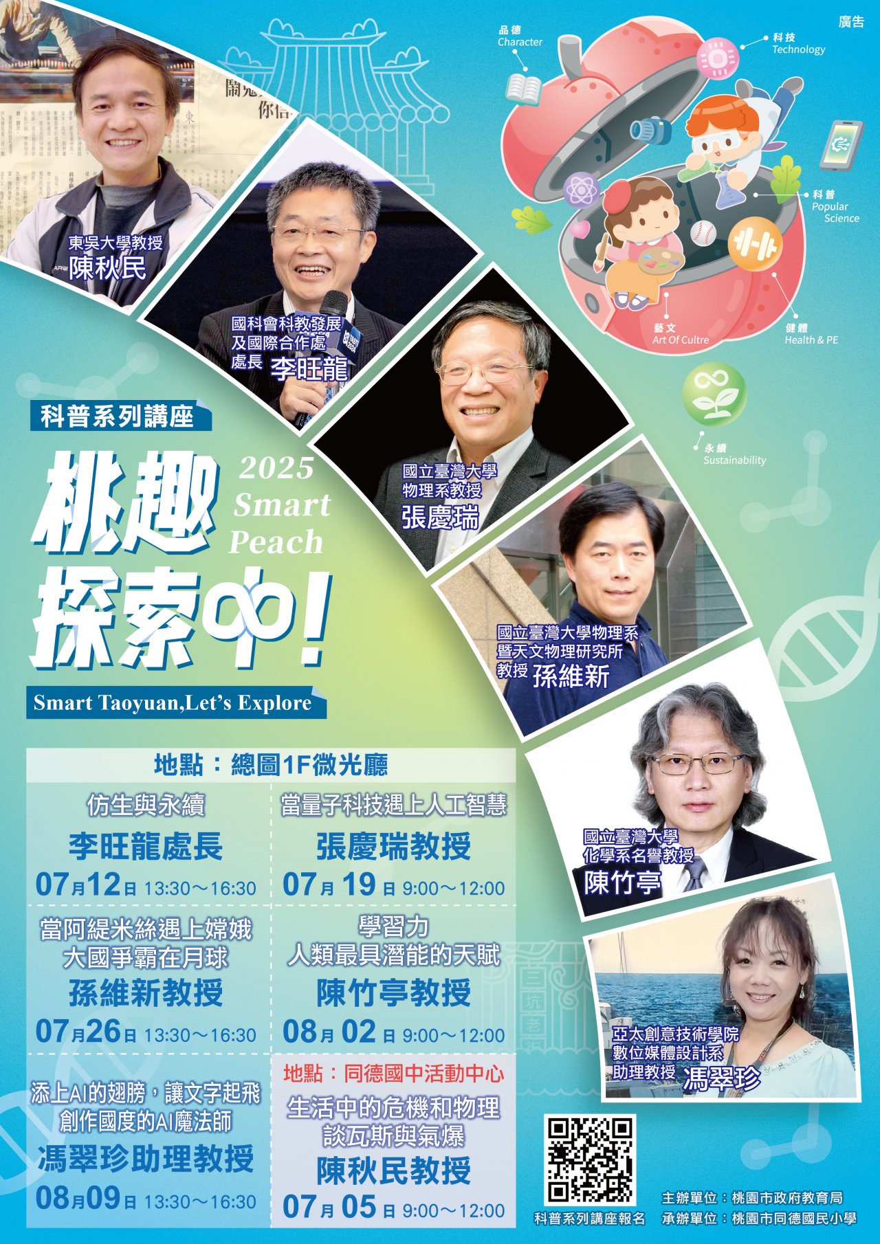 科普講座:https://www.typl.gov.tw/zh-tw (桃園市立圖書館網頁/最新消息/活動訊息) |