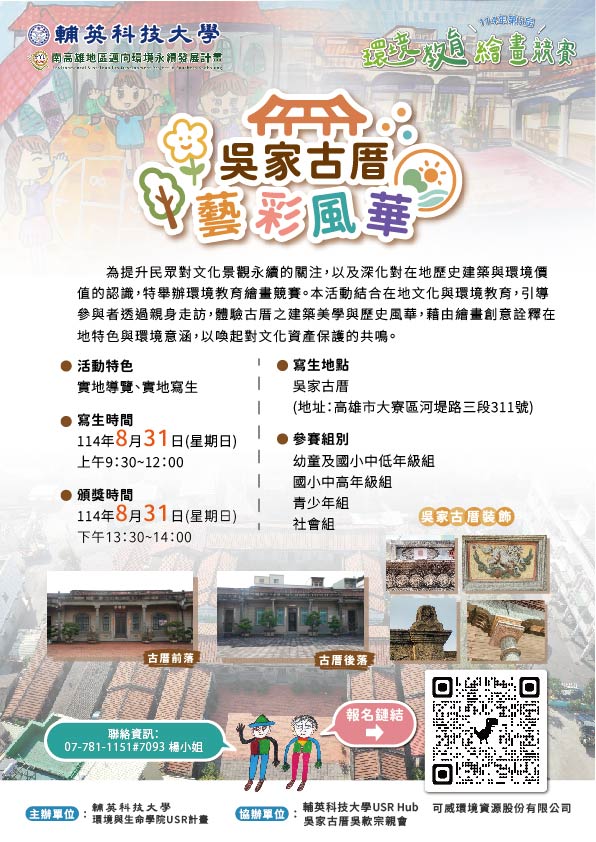 | (一) | 推廣大寮區在地文化與歷史建築之美,提升民眾對吳家古厝文化資產之認識。 |