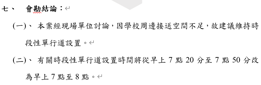本案經現場單位討論,因學校周邊接送空間不足,故建議