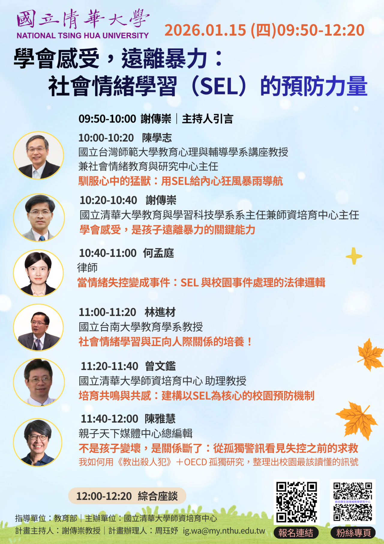 | 一、 | 依據國立清華大學114年12月31日清師培字第1149010412號函辦理。 |